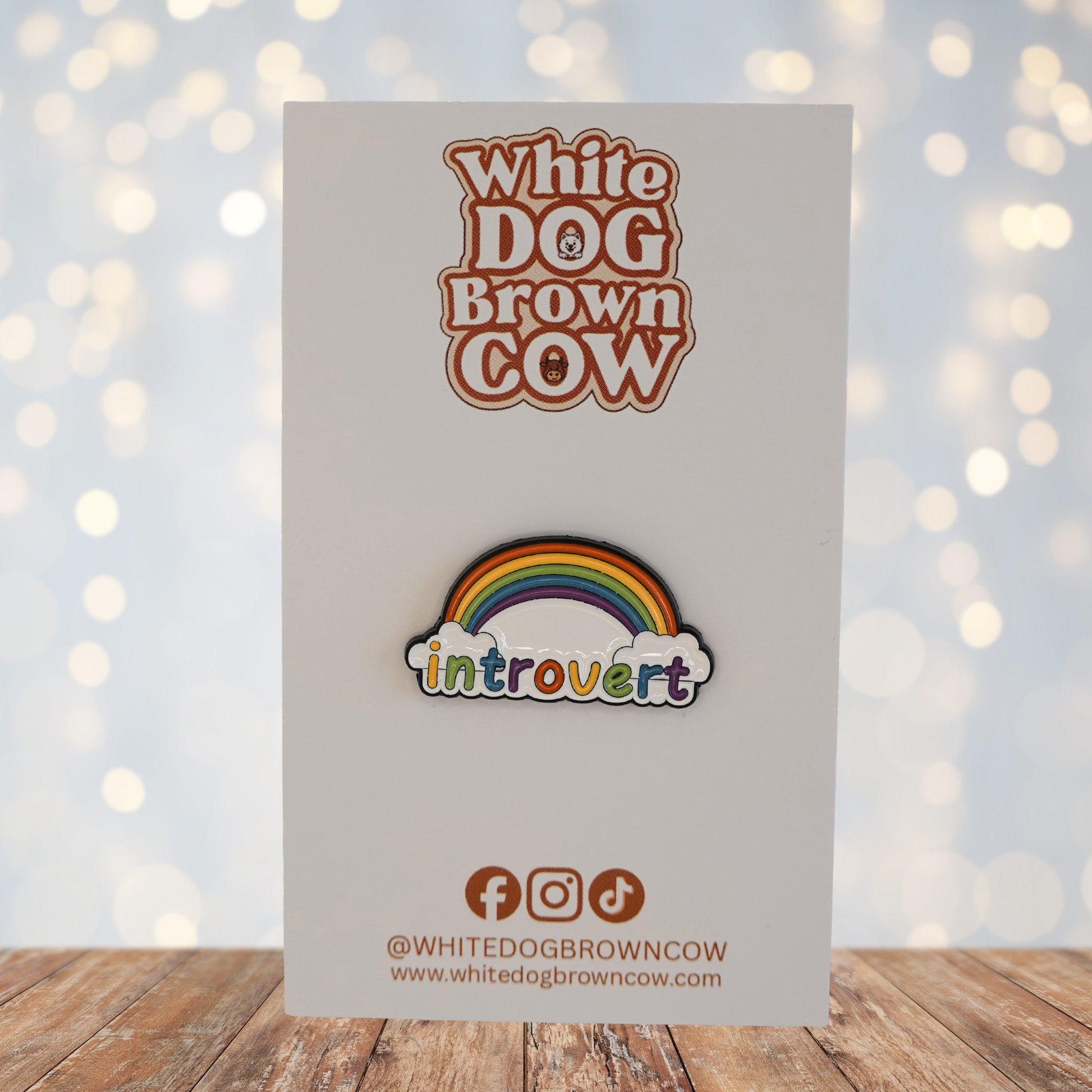 This “Introvert” pin pairs cheerful colors with calm honesty - a soft statement for those who’d rather observe than mingle.