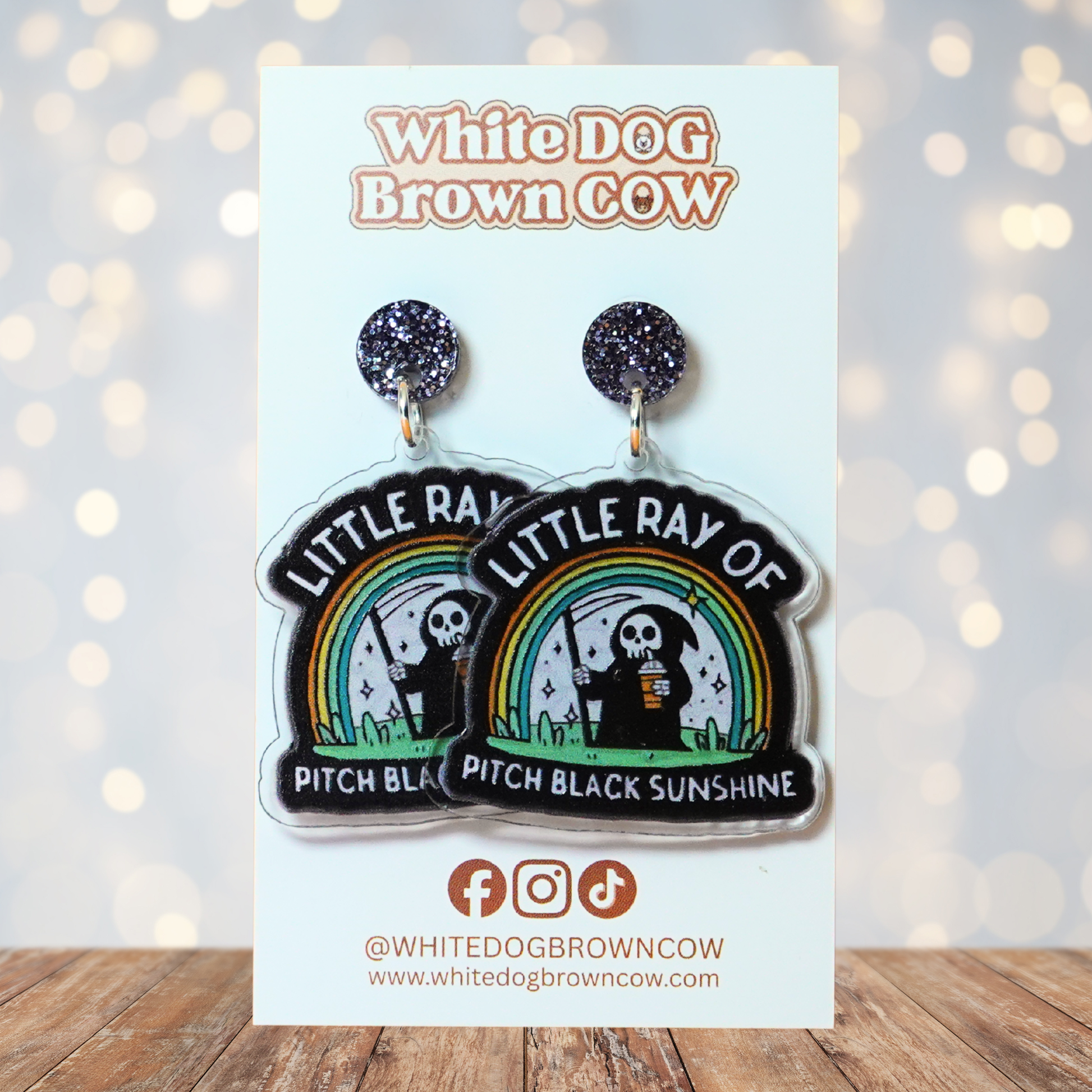 "Little Ray Of Pitch Black Sunshine" Stud Dangle Earrings