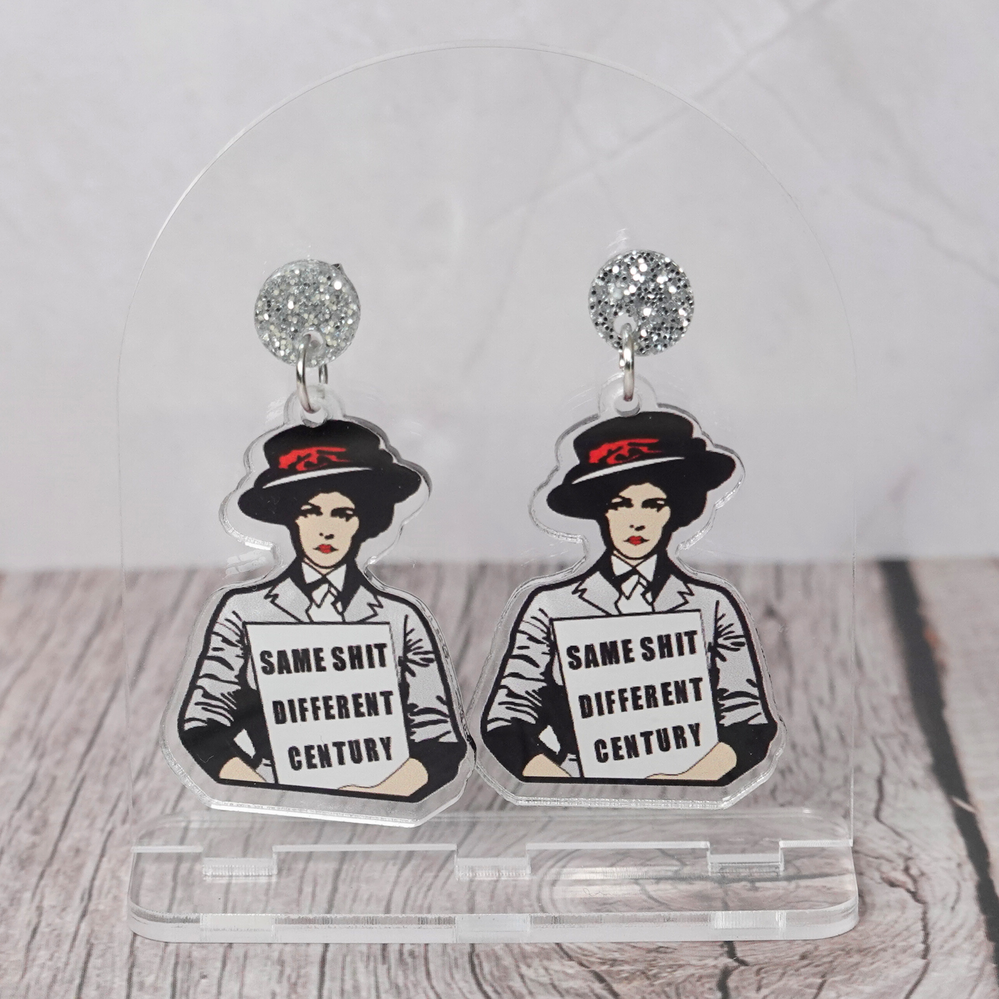 "Same Shit Different Century" Stud Dangle Earrings