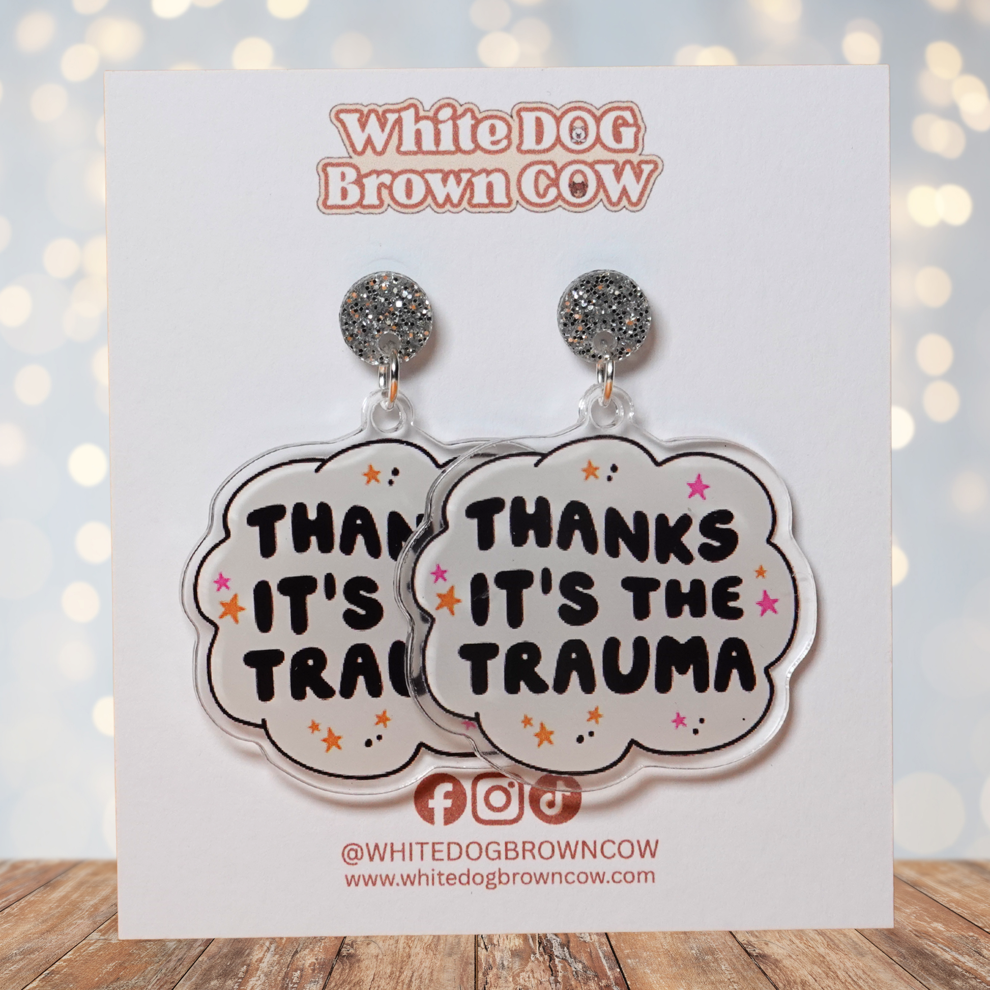 "Thanks It's The Trauma" Stud Dangle Earrings
